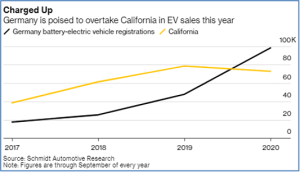 Road transport currently accounts for 25% of emissions in the UK, and a significant change will be required if the UK is to achieve its targets. Lessons can be learned from countries like Norway and Germany. Electric vehicle (EV) sales in Germany surpassed California’s this year for the first time, fuelled by a range of government incentives. Germans bought nearly 100,000 fully-electric cars in the first nine months of this year, roughly a third more than Californians. State subsidies play a huge part, alongside longer battery life and the greater travel distances it allows.