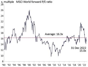 Equities too have seen a major reset in valuations. Last year’s drawdowns were not due to any contraction in earnings, which in most major geographies actually increased over the year. The falls in prices simply represented markets getting cheaper.