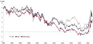 Further rises in interest rates could see modest pressure on bonds in the earlier part of the year. But with government bond yields nearing the 4% to 5% range that persisted in the early 2000s, these traditional safe havens are much more attractive, offering income, a long term positive real yield and diversification to portfolios in the event of a recession. Having long been cautious on bonds, after a 25% fall the time has come to begin adding back.