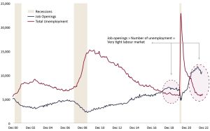 Most of all, the US job market remains robust. The unemployment rate in December fell back to 3.5% and shows few signs of softening with the demand for labour high and many more job openings than applicants. Unsurprisingly wages continue to rise given the imbalance.
