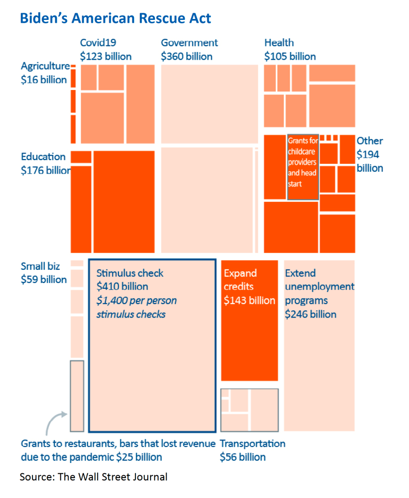To add fuel to the fire, Congress has recently agreed another round of stimulus, passing President Biden’s $1.9tn American Rescue Act, the second-largest spending package in history and putting another $1,400 of cash in the hands of American households. This is despite the expectation of GDP growth in the US of 6.5% in 2021.